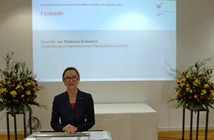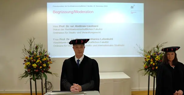 Der Dekan der Rechtswissenschaftlichen Fakultät, Herr Prof. Dr. iur. Andreas Lienhard (Ordinarius für Staats- und Verwaltungsrecht) und die Vizedekanin, Frau Prof. Dr. iur. Marianne Johanna Lehmkuhl (Ordinaria für Strafrecht, Wirtschafts- und internationales Strafrecht), führten durch die Veranstaltung. Abgerundet wurde der Anlass durch eine Festrede der Direktorin des eidgenössischen Personalamtes (EPA), Frau Dr. iur. Barbara Schaerer.
